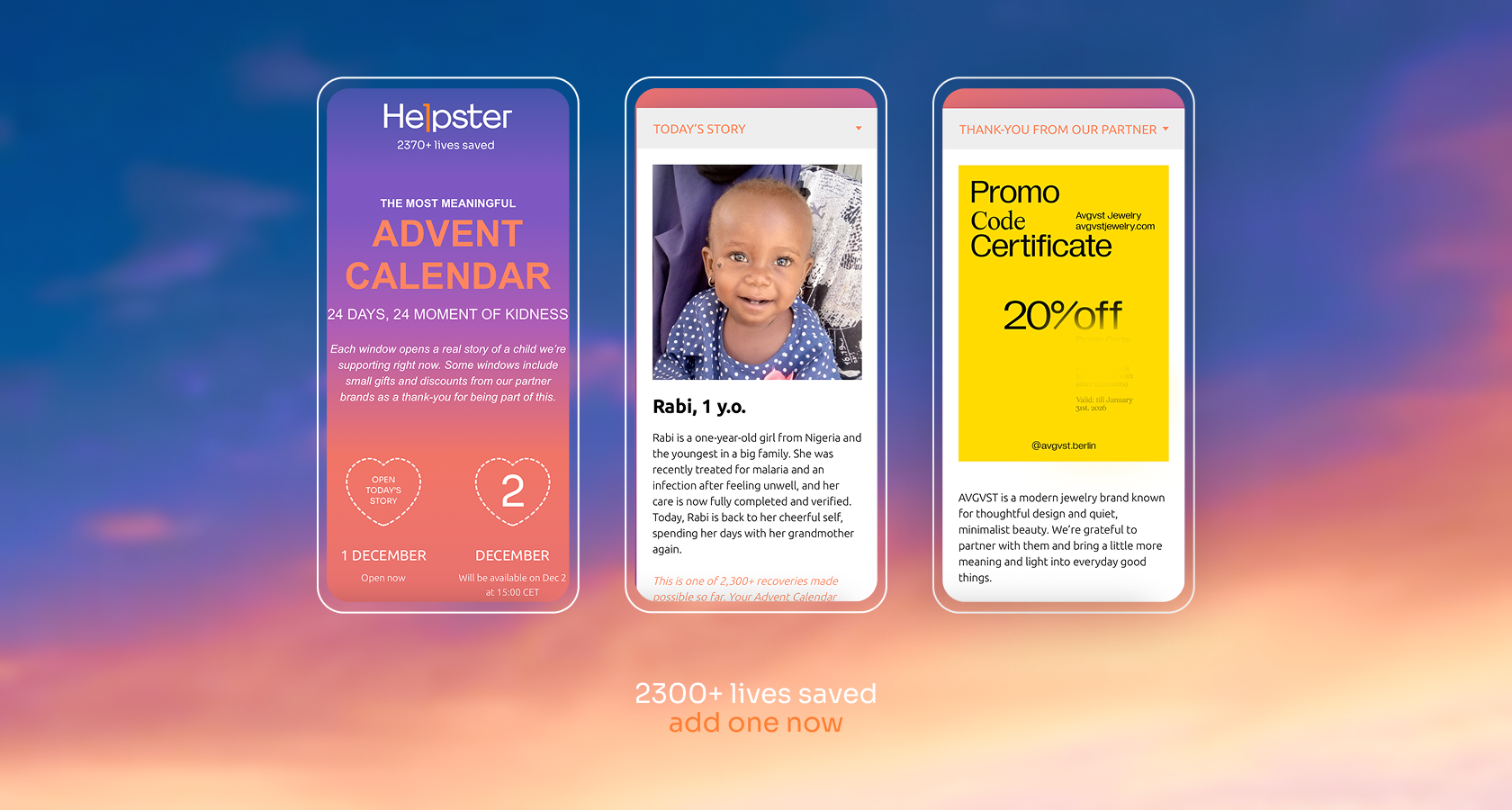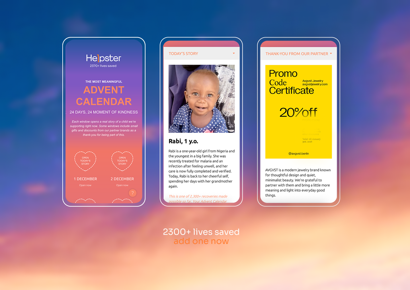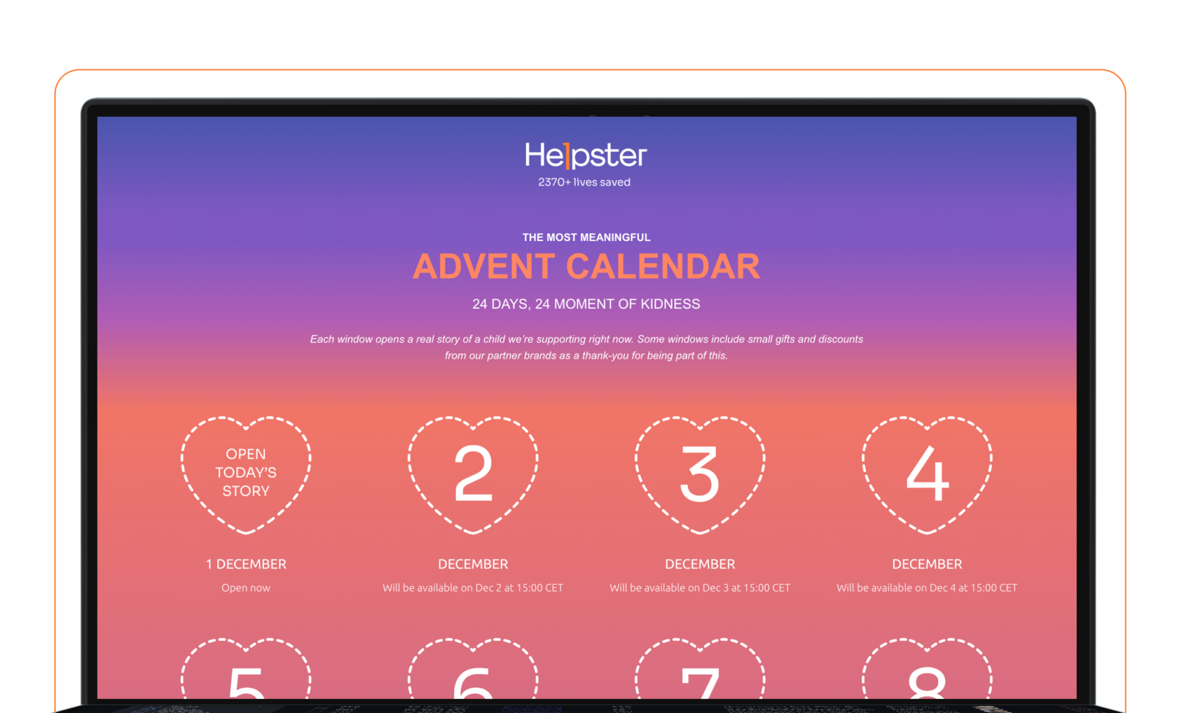 The Helpster Advent Calendar is back for 2025 a digital calendar highlighting 24 children who have already recovered thanks to life-saving medical care.