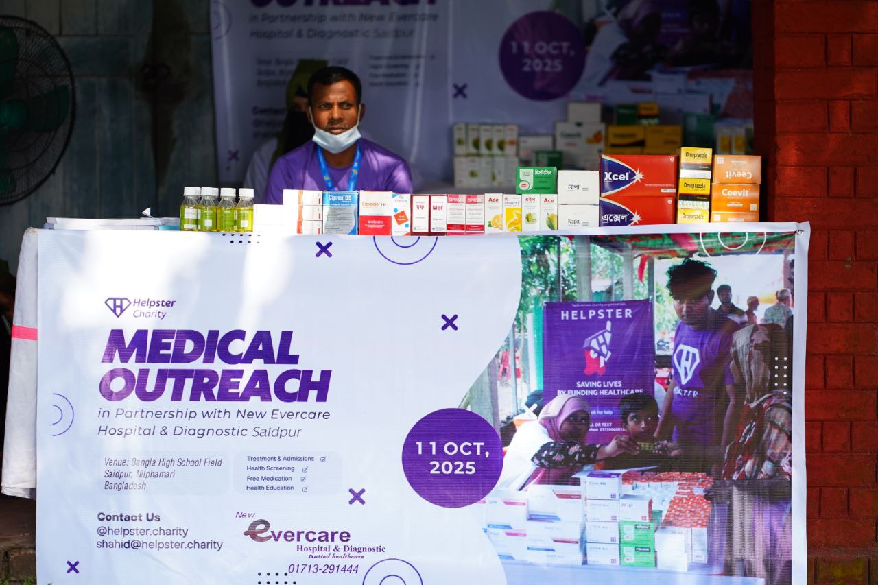 Helpster Charity, in collaboration with New Evercare Hospital & Diagnostic Centre, carried out a transformative medical outreach programme on October 11, 2025, in Saidpur, a densely populated town harbouring over 40,000 people in northern Bangladesh. The outreach took place at Bangla School Field, targeting impoverished and displaced families, including those in 22 camps and railway colony areas with little to no access to essential healthcare.